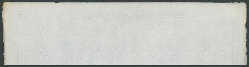 Perkins Bacon Small Star Watermark Paper complete sheet (274x524mm) with 240 watermark bits (12x20) and the full marginal lines and inscriptions, slightly deckled edges, no folds. Superb. A remarkable artefact. This paper was used for Queensland's 1860-61 issue SG 7-20, and for stamps of numerous other British Colonies, including South Australia, Tasmania and Victoria. (Image1)