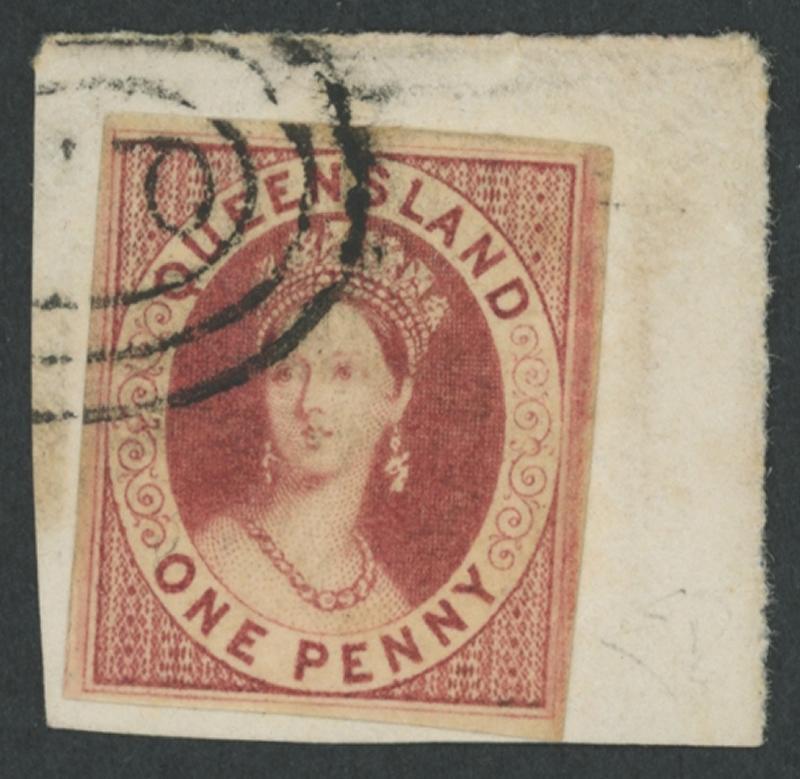 1860 QV Chalons Large Star Watermark 1d carmine-rose SG 1, deep rich colour, large margins with complete outer framelines, tied to small piece by 'QL'-in-concentric-ovals clear of the Queen's face, Cat £850. Superb. Enzo Diena Certificate (1979) states "è perfetto" (= is perfect). This is one of the more common Number Ones from the Classic era. However, most examples are cut-into, have faults, and/or are faded to some degree. This must surely be one of the finest examples. Sold at our auction of 14.8.2010 for $1980 (Sale 157 Lot 274). (Image1)