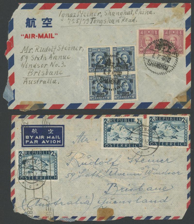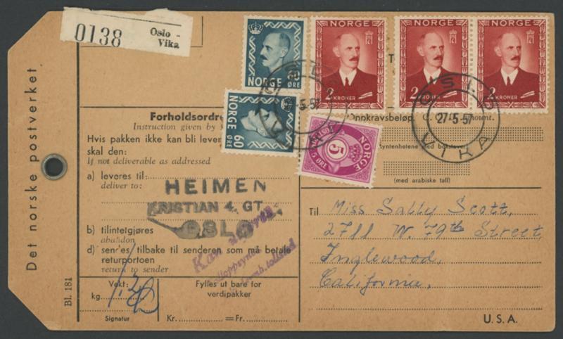 COVERS: 1950s-60s Parcel Post tags from Norway x2 with values to 5kr, Ireland x4 with values to 1/- pair and Switzerland x27 with values to 10fr x3 & various PO labels plus a commercial sample envelope, also 1920s from France (creased) & 1977 Priority Paid from Australia, mostly very fine.