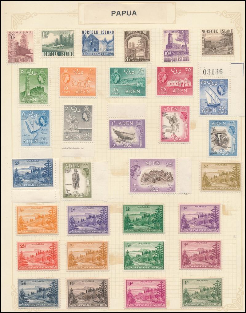 Collector's remainders with QEII mint sets from Aden, Bahamas, Somaliland and Gibraltar, GB large pieces from parcels to Australia, Norfolk Island mint & CTO range, a page of early France, 1954 Solomons formular aerogramme (front only) from Roviana with "Barakoma/30 3 54" cancels, etc.