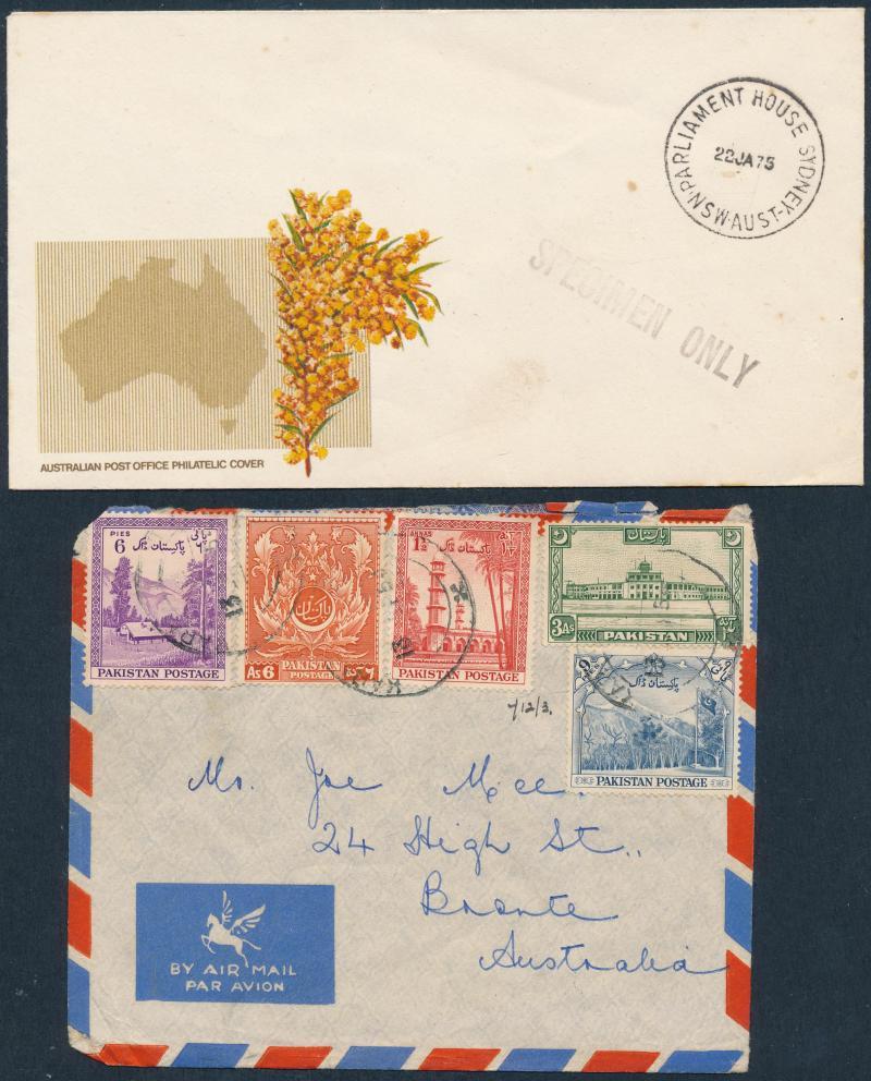 COVERS: Large box jam-packed with worldwide covers, picture postcards, postal stationery, etc, mostly from the early 1900s up to 1970s, lots of commercial mail inwards to Australia including airmails, noted plenty from Ceylon, India, Malaya and other Asian countries, Canada including registered & censored mail, European colonies in Africa noted lots from Tanzania, Pacific Islands, and many more interesting items throughout, also some FDCs, condition variable but most are fine to very fine. Weighs 6kg.