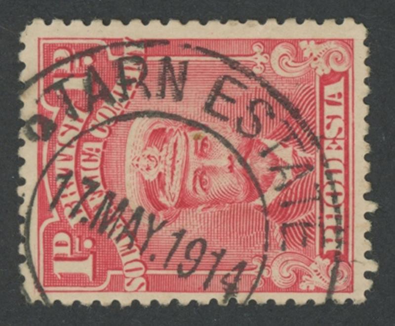 Tarn Estate: 'TARN ESTATE/17.MAY.1914/[S.RHODESIA]' double-ring cds (Proud D2), very fine partial strike on BSAC KGV Admirals 1d red. PA 19.9.1913; closed 11.9.1923. Handbook Rare. [Postal Agency under Hartley, Southern Rhodesia] (Image1)