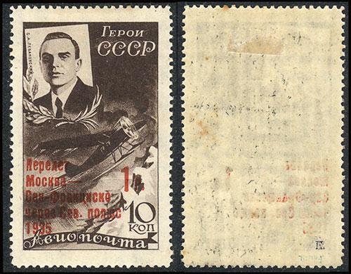 Sc.C68, 1935 Moscow-San Francisco flight, mint lightly hinged, minor defects on gum, with two guarantee marks on reverse, very good appeal, rare, catalog value US$1,250. (Image)