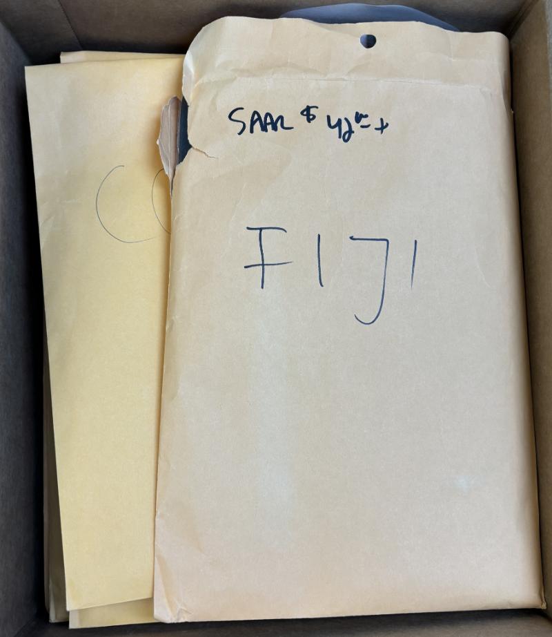 British Colonies Accum early to 1970s-80s */O/C, ea colony in large envs w/ many (100s) ea, mostly stock/album pgs, glassines, loose covers (mostly FDC, some earlier), etc, colonies incl: Cook Is, Fiji, Mauritius, Montserrat, Nauru, New Hebrides, Niue, Gilbert & Ellice, great for bourse or eBay dealer, H/NH (Image)