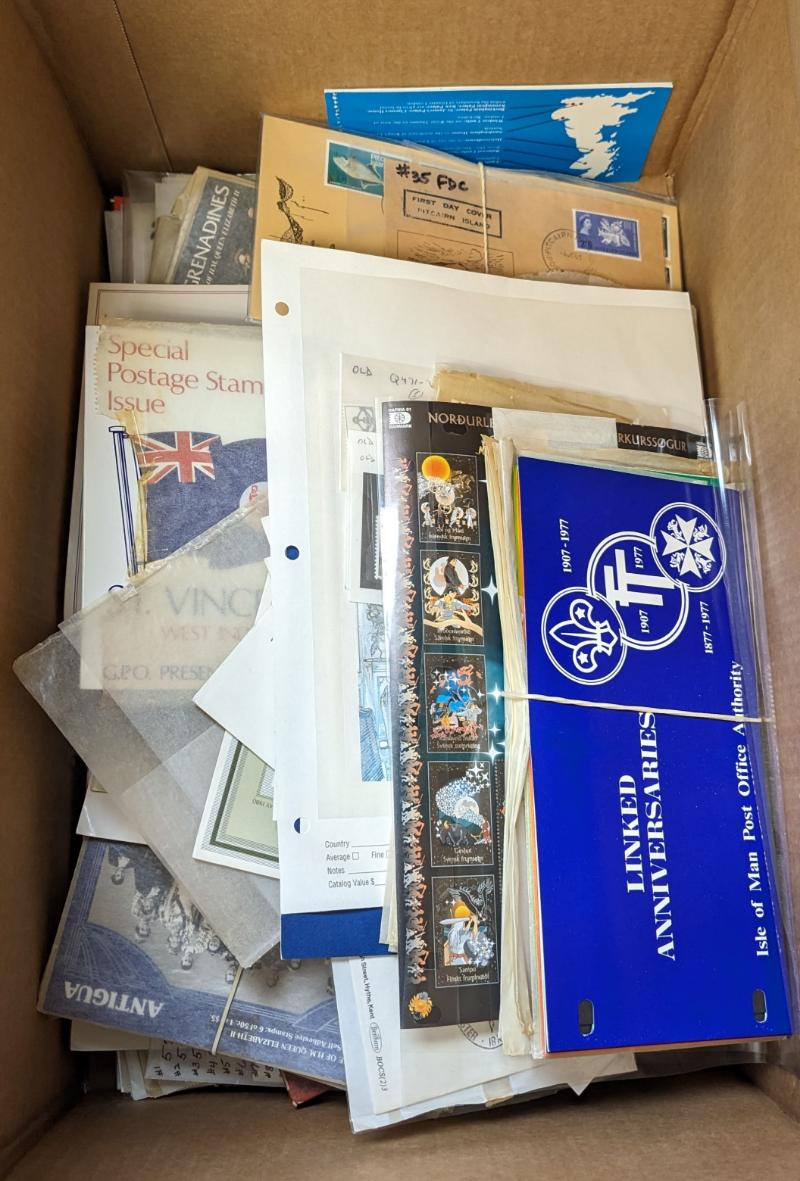 Accum (1000s) mainly unused mostly 1960-2000s w/ dup in glassines, cards, shoeboxes, etc incl much GB w/ Blks, presentation packs also Channel Is, Ireland, Solomon Is, Canada, Australia, NZ, etc w/ S/S, booklets, etc, many topicals, gen F-VF H/much NH