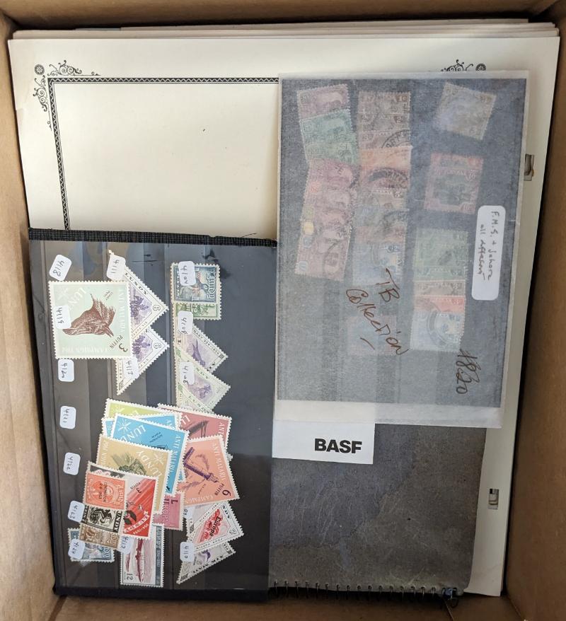 Collection, Accums & Stock; many folders by country w/ loose album pgs, stock cards, dealer cards, incl Barbados, Mauritius, Seychelles, North Borneo, Straits Settlements, Transvaal & KUT; Vario pgs w/ more mixed Empire, stack of Bermuda Scott pgs to 1996, issues mostly 1910-80; (8) retired APS circuit books w/ Bahamas, Barbados, Bermuda & Jamaica w/ listed 2016 CV $909 (NV); plenty of */O stamps, gen F+ H/NH