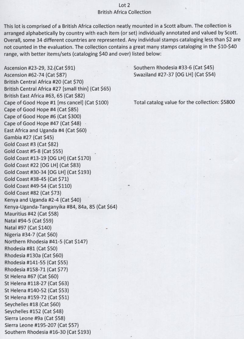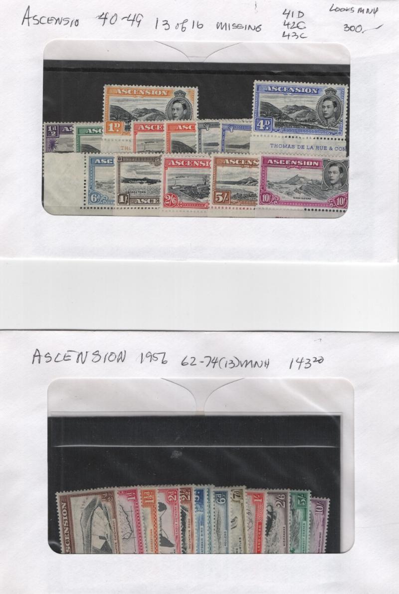 Unused Collection abt (1000+) mainly early to mid 20th Cent mounted in (3) Scott Specialty albums incl Ascension #23-36, 53, 62-74 & near cplt 1963-88, Basutoland 18-28, 40, 61-71, Bechuanaland Prot 83-91, 124-36, 148, 154-65, British E Africa 27-30, East Africa & Uganda 10, 36, Gambia 5, 6, 12-19, 24-27, 31, 35, 39, 45-52, 54-60, 82-86, 108, 117, 147, 175-87, Gold Coast 44, 108-11, 130-41, 148-59, GB Offices in Morocco 263-69, Niger Coast 37-40, 47-48, 57-60, 63, Nigeria 9, 10, 32, 38-49, 74, 80-91, N Nigeria 51, N Rhodesia 75-88, Nyasaland Prot 21, 33, 38-46, 47-50, 68-81, 86, 97-111, 123-34, Sierra Leone 5, 13, 21, 23, 27, 31, 53, 82, 88, 152, 166-69, 195-207, Somaliland 17, 19, 21-26, 34-35, 37-39, 40-48, 60, 63, 64-73, 84-95, 96-107, 116-26, 136-37, Swaziland 10-19, Tristan Da Cunha near cplt 1952-87; high CV, gen F-VF H/NH (Proceeds Benefit APS) (Image)