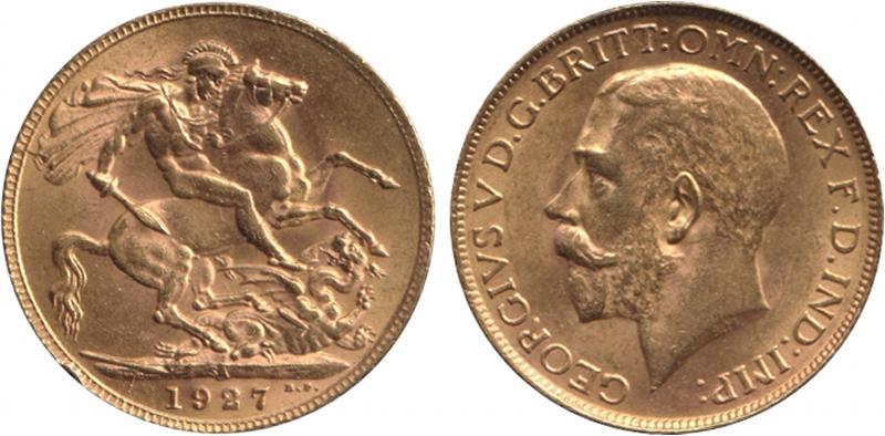 SOVEREIGN: 1927 KGV St George reverse, Marsh 291, gVF. (Image1)