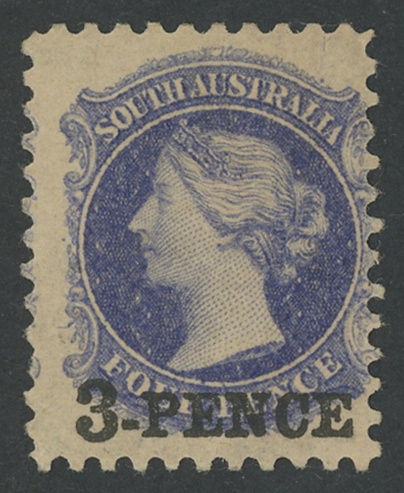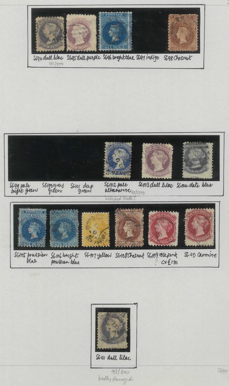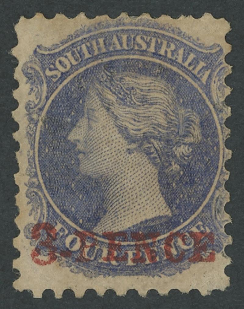 1856-58 QV Perkins Bacon Adelaide Printings 1d yellow-green SG 6, margins close to good, minor blemishes, Cat £600. RPSV Certificate (2007) as the then SG 5. Larger than Don Pearce's dated example that sold for $366. [We are pleased to see that Gibbons have now combined SG 5 & SG 6 - "green" & "yellow-green" - into a single entry, there being little difference in shade. Most examples in the market are, or are likely to be, SG 13 or 14 (now also amalgamated, as SG 13) with the roulettes trimmed-off. Genuine examples of the Imperf Adelaide Penny are much scarcer than the catalogue value would suggest] (Image1)