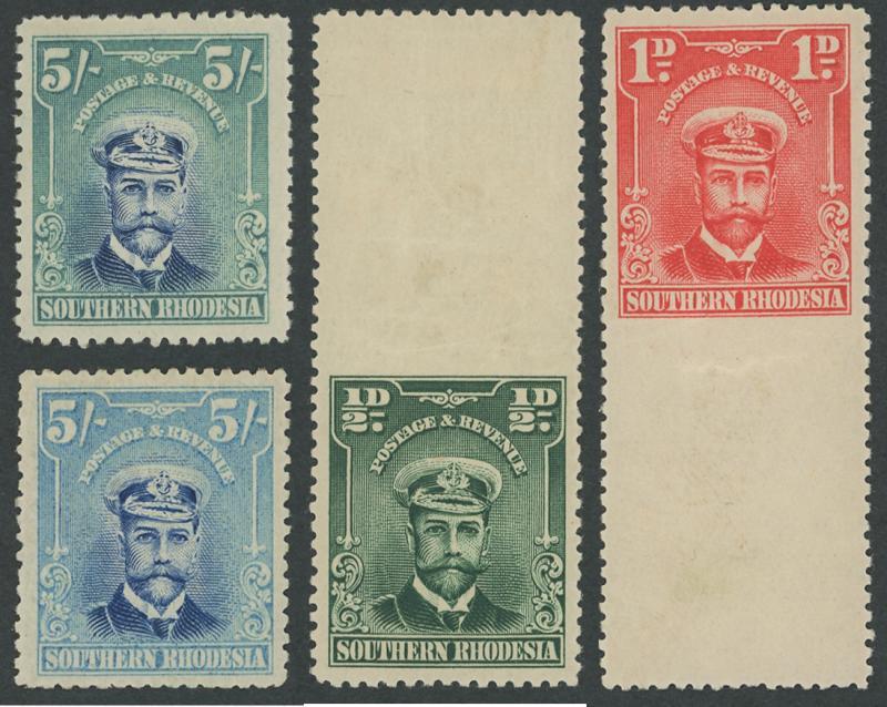 1924-29 KGV Admirals ½d to 5/- set SG 1-14 plus a range of additional annotated shades including 1/6d orange-yellow, 2/- deep brown and 5/- x4 one in a very distinct deep blue-green, also ½d Imperforate at Top between stamp & cross-pane gutter and 1d Imperforate at Base between stamp & cross-pane gutter (both unlisted by Gibbons), generally fine to very fine, Cat £900+.