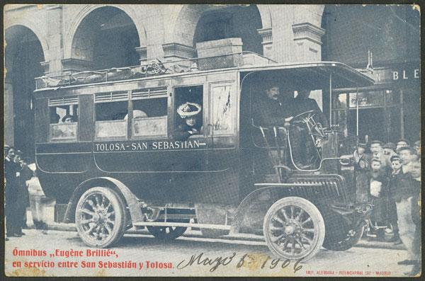 Eugene Brillié bus operating between San Sebastian and Tolosa, beautiful PC dated 6/MAY/1906, rare, very handsome! (Image)
