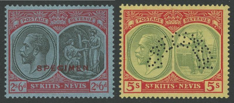 1921-29 KGV Badge Multiple Crown CA Watermark ½d to 5/- set with 'SPECIMEN' overprints or punctures SG 37s-47cs, the higher values mostly very lightly mounted, the others with some small hinge remainders, Cat £450. (Image1)
