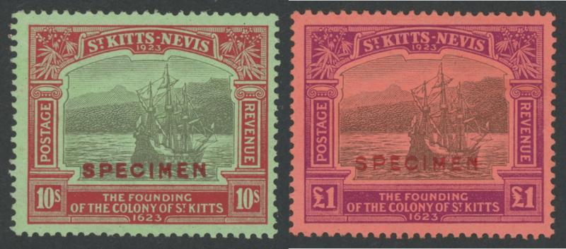 1923 Tercentenary ½d to £1 overprinted 'SPECIMEN' in Red set SG 48s-60s, generally well-centred, the 10/- with minor gum tropicalisation, most with small hinge remainders, the £1 lightly mounted, Cat £800.