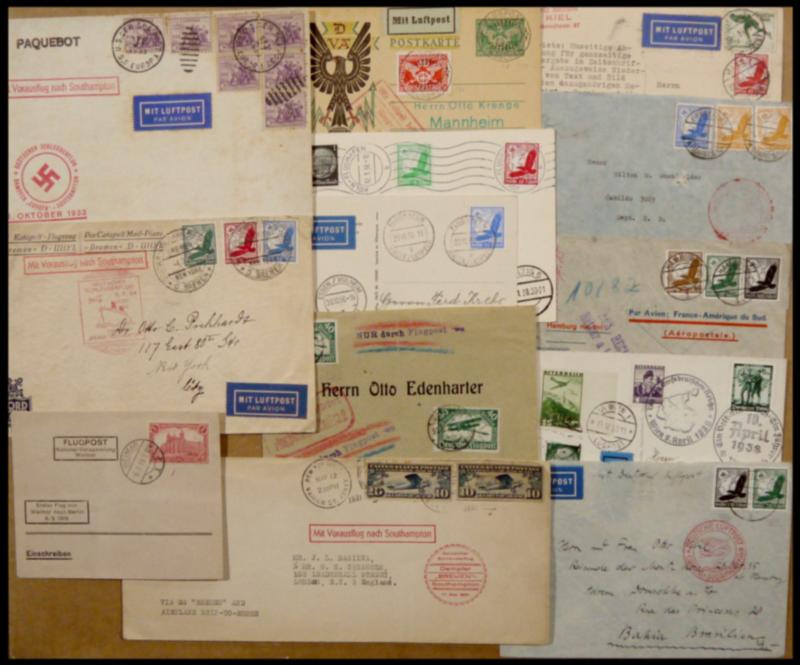 1919-1938, interesting lot of 13 different airmail documents, with also catapult flights, slightly mixed condition, inspect (Image)