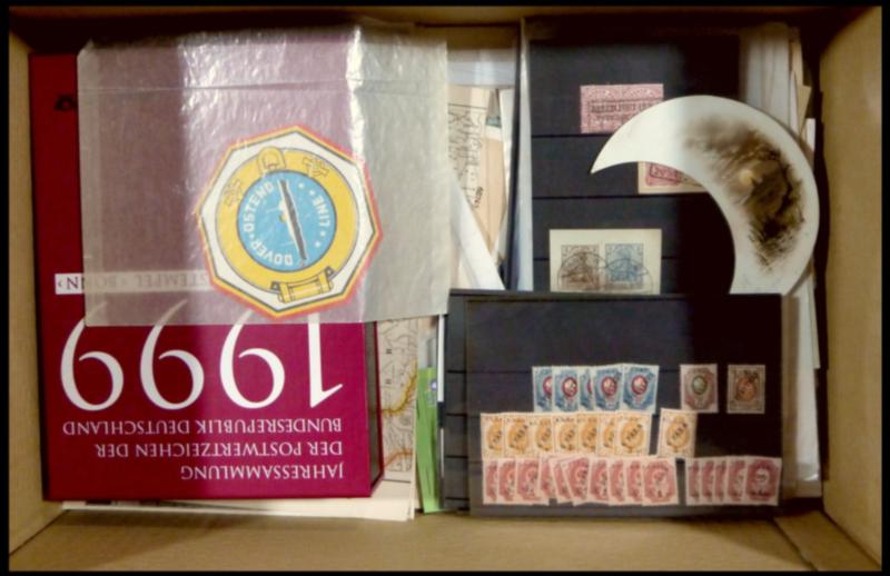 Small estate with many documents from the 80s, a album with motif stamps, soaked off values, accessories, and so on, treasure trove (Image)