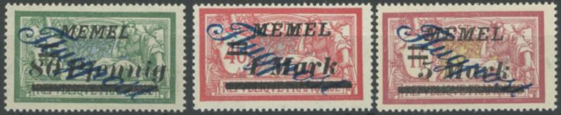 1922, 80 Pf. On 45 C, 1 M. On 40 C. And 5 M. On 1 fr. Airmail, 3 values with overprint flaw type II, mint never hinged, superb, expertized Huylmans, Michel 85.- (Image)