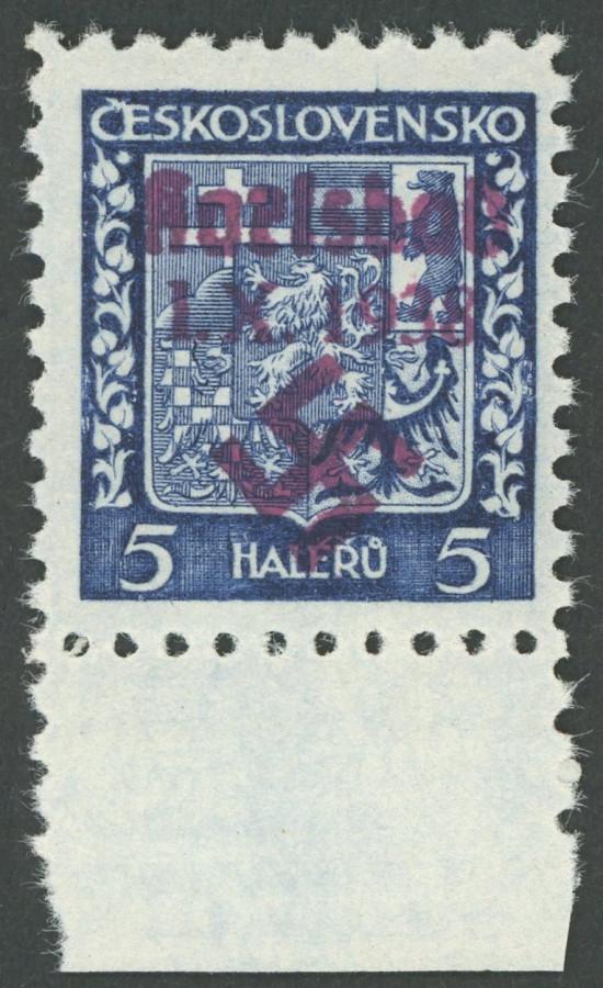 1938, 5 H. Black cobalt, lower margin copy, mint never hinged, superb, edition 164! Expertized Mahr, Michel 320.- (Image)