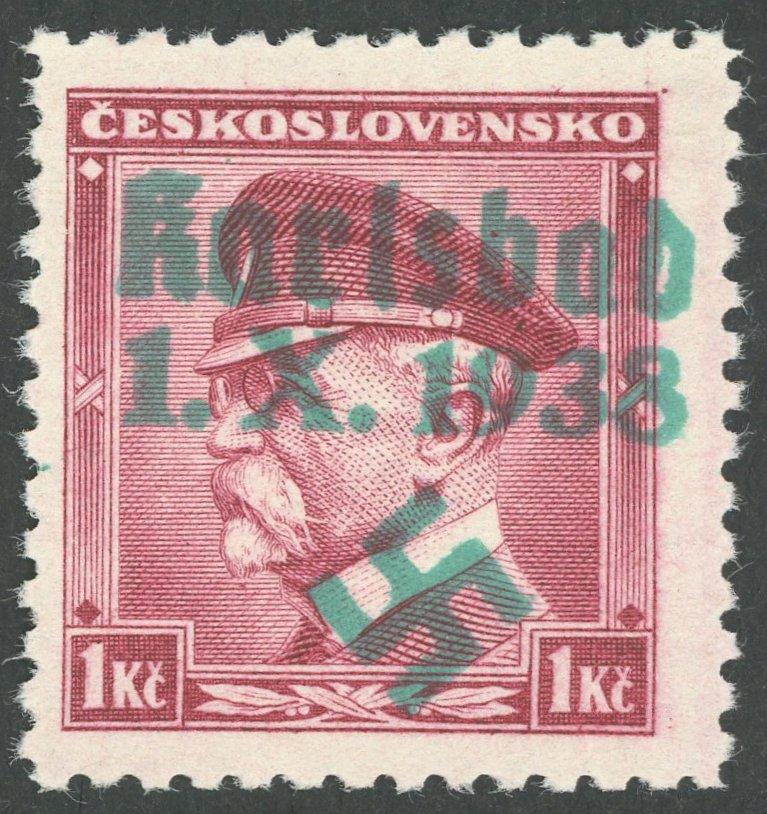 1938, 2 Kc. Black green, perforated L 13 3 / 4, rest of hinge, superb, RR! Issued only 31! Expertized Mahr and photo expertize Brunel, Michel (1500.-) (Image)