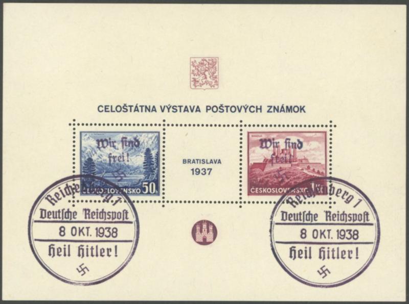 1938, souvenir sheet stamp exhibition, superb, RR! Issued only 144! Expertized Dr. Hoerr and photo expertize Brunel, Michel (3000.-) (Image)