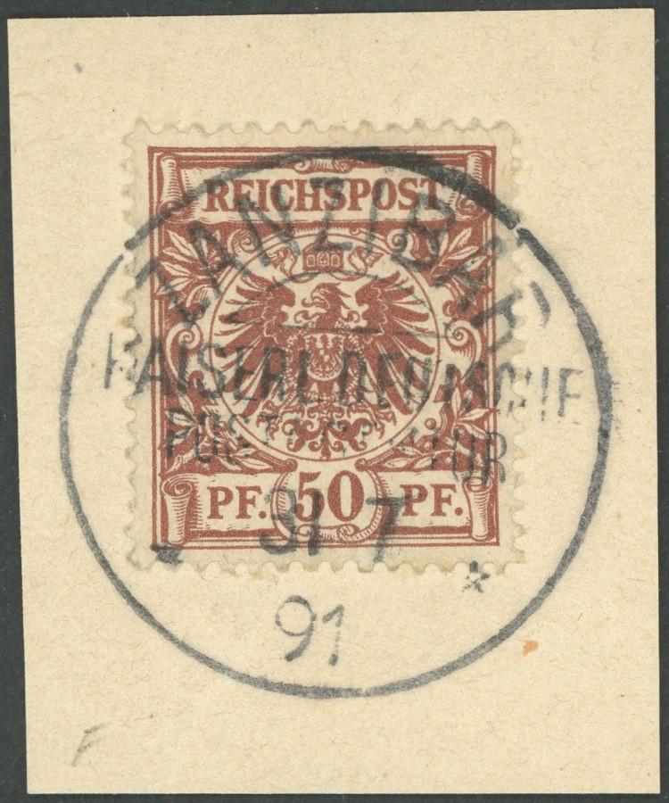 ZANZIBAR 31.7.91, perfect on 50 Pf. Bright red brown, superb in every respect piece of letter, expertized Bothe (Image)