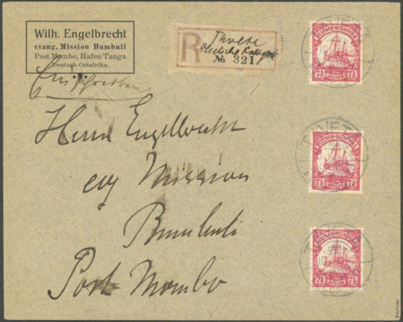 10.12.14, TAVETA, army postal service registered cover the evangelical mission Bumbuli, arrival postmark MOMBO, superb, RR! Expertized Mansfeld (Image)