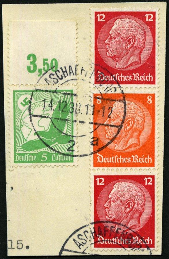 1945, army postal service small package stamp, rouletted, with overprint flaw 2 the indication of value 12 higher, superb piece of letter, expertized Pickenpack (Image)