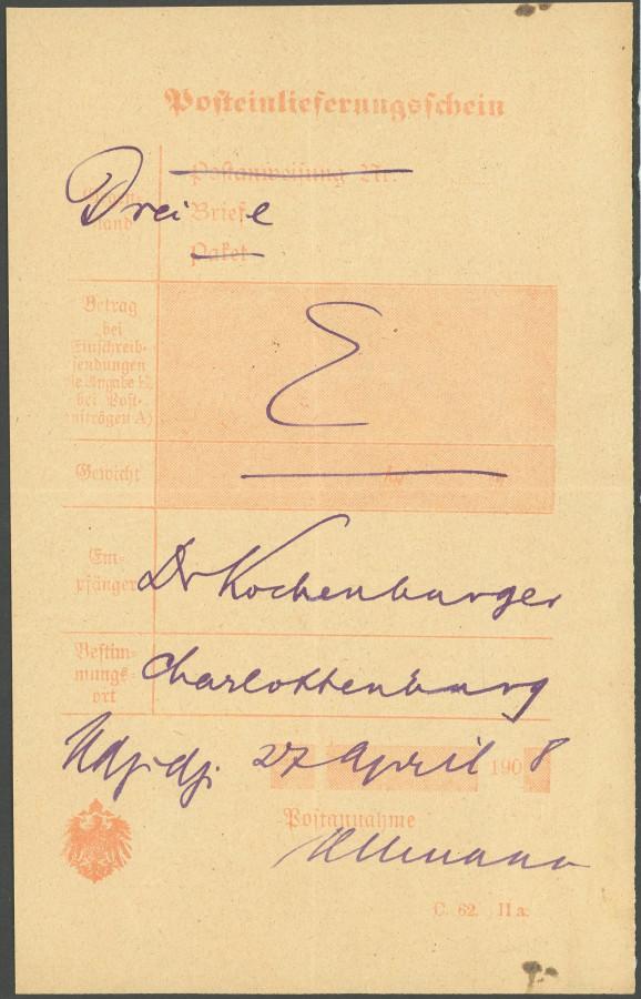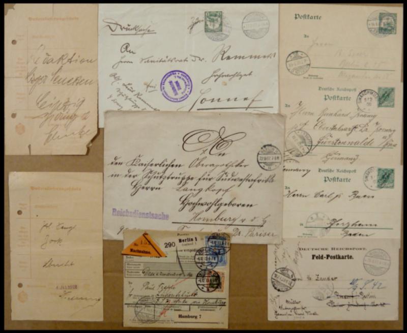 1900-14, lot of 9 documents, as well Reich official matter, 2 postal service delivery certificates, C.O.D. Package card to Lüderitzbucht and so on, condition varies, inspect! (Image)