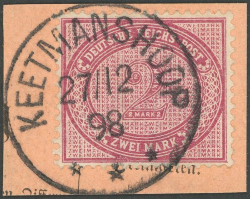 1898, 2 M. Dark red crimson, cancel KEETMANSHOOP, 27.12.98, parcel card, as kept by the post office, superb (Image)