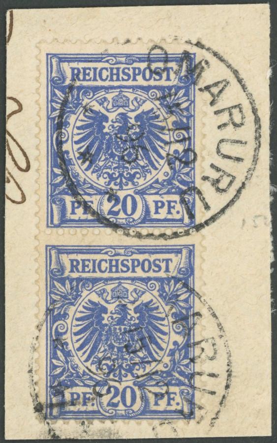 1896, 20 Pf. Violet ultramarine in the vertical pair on linen letter with postmark OMARURU, superb (Image)