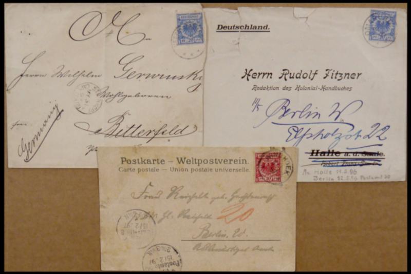 1896 / 7, OMARURU, KEETMANSHOOP and WINDHOEK, 2 covers and a picture postcard in defective condition (Image)
