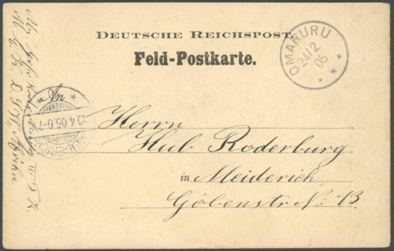 OMARURU, 24.2.05, on fieldpost card to Meiderich, superb (Image)