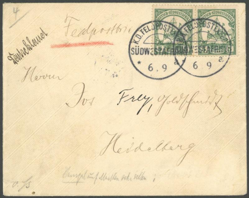 K. P. FELDPOSEXPEDITION *a, 6.9.04, on Feldpsotbrief to Heidelberg, franked with horizontal pair 5 Pf., superb (Image)