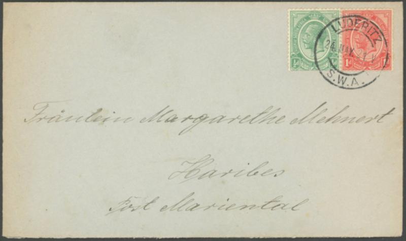MARIENTAL, 25.5.21, reverse as arrival postmark on cover from LDERITZBUCHT, superb (Image)