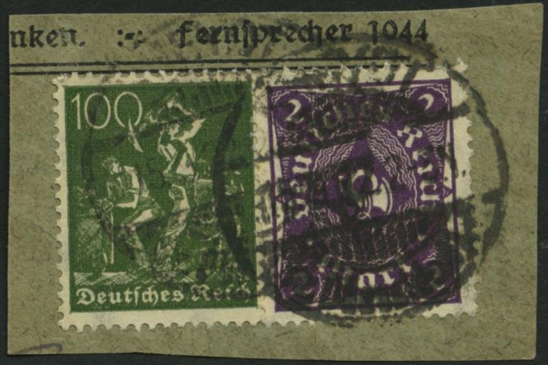 1922, 2 M. Dark violet with additional franking on piece, superb, expertized Infla, Michel 110.- (Image)