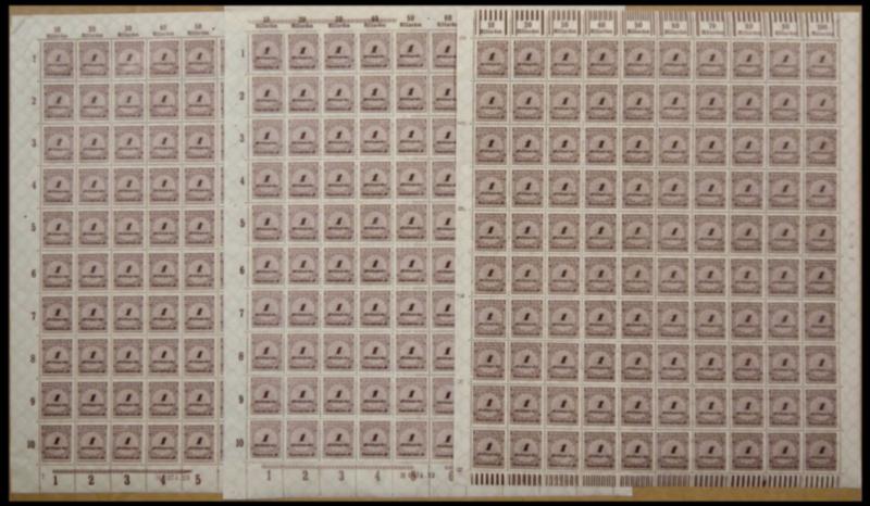 1923, 1 Mrd (Billion). M. Dark sienna, perforated, 3 sheet (100), plate printing A and B and rotary printing, mint never hinged, superb (Image)