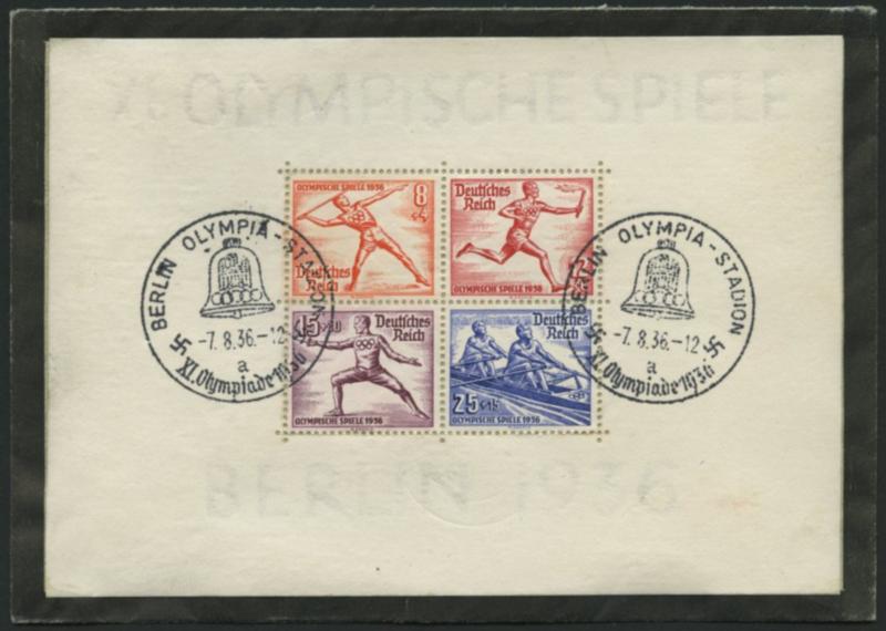 1936, souvenir sheet olympic games with special cancel reverse on registered cover, very fine (Image)