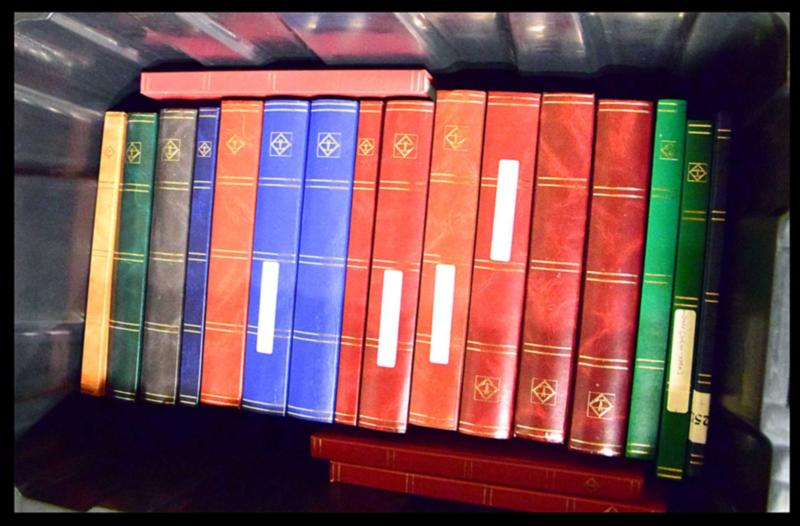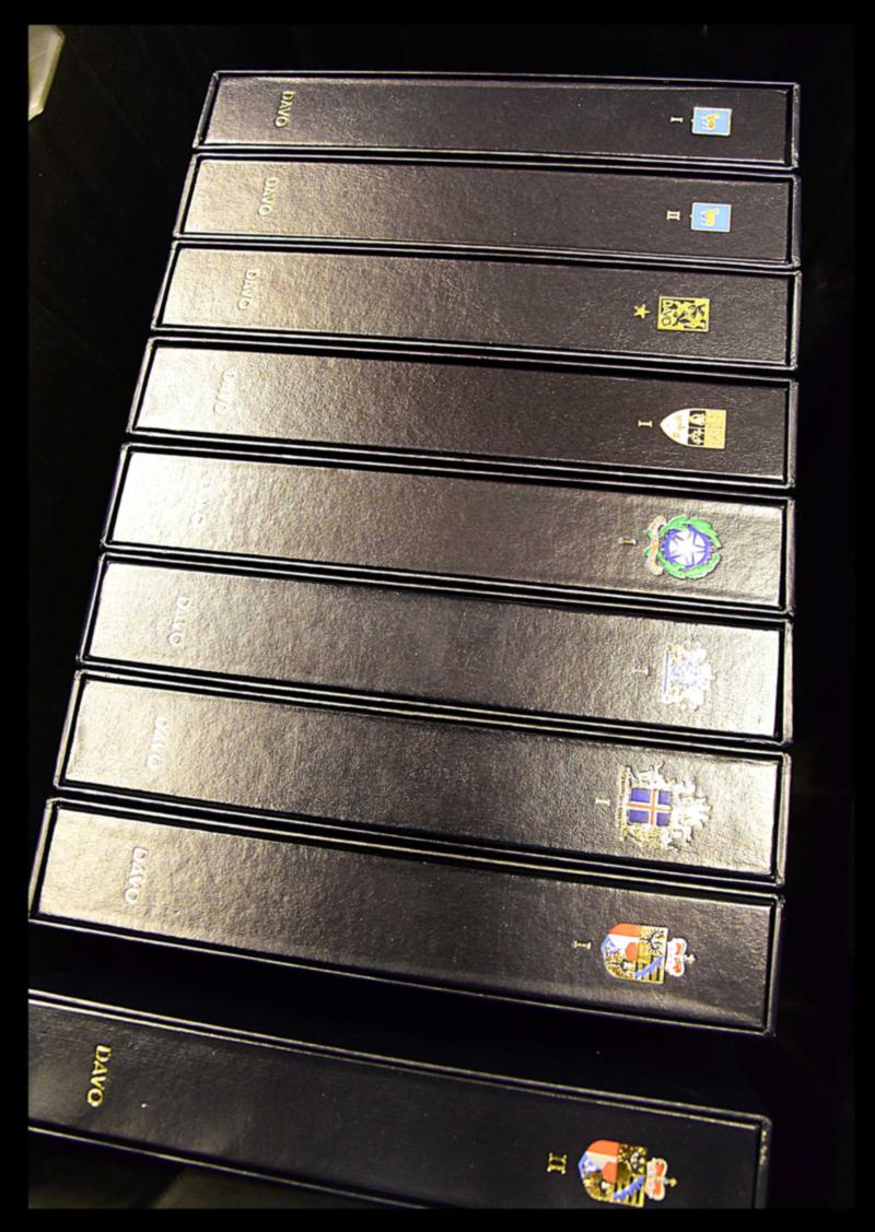 SUPPLY, LOT OF 9 DAVO ALBUMS + 10 STOCKBOOKS VF. Lot of 10 black Lighthouse stockbooks, 16 pages x2, 32 pages x8 plus 9 luxury hingeless Davo albums with slipcases, Liechtenstein Vol. 1 (1912 to 1969), Vol. 2 (1969 to 1999), Iceland Vol. 1 (1873 to 2000), Netherlands Vol. 1 (1852 to 1944) + Indies (1864 to 1948), Indonesia (1949), New Guinea (1950 to 1962), Italy Vol. 1 (1945 to 1969), Canada Vol. 1 (1851 to 1969), Curaçao (1873 to 1949) with Antilles (1949 to 1969) and Suriname (1873 to 1975), Faroe Vol. 1 (1919 to 2009), Vol. 2 (2010 to 2019). Estimation $1600.00 CAD. (Image1)