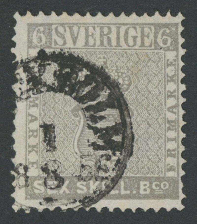 1855-58 Arms 6s grey SG 3 (Michel 3a), well-centred for this issue, untidy Stockholm cds, Cat £1700 (€1100). Slavomir Kaiser Certificate (1983). (Image1)