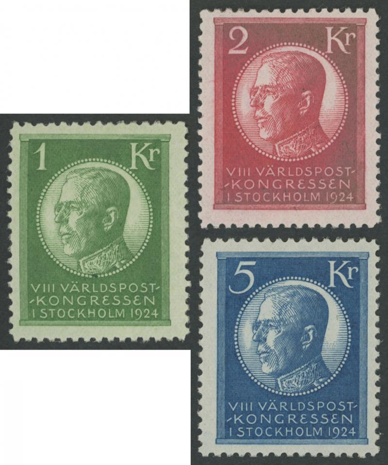 1924 Universal Postal Union Congress 5o to 5kr set SG 146-160, Michel 144-158, some discolouration on 2kr, unmounted, Cat SG £750 (*), Mi €1200 (*). (16) (Image1)