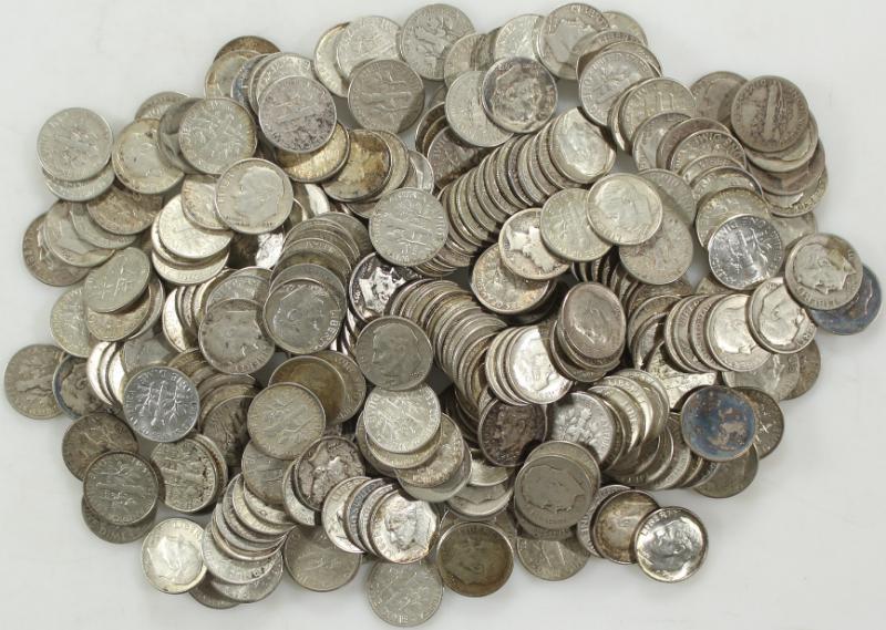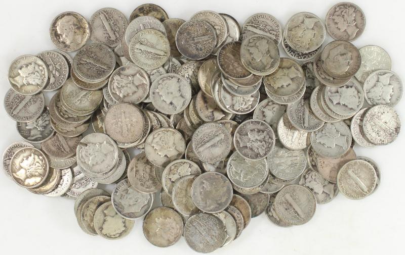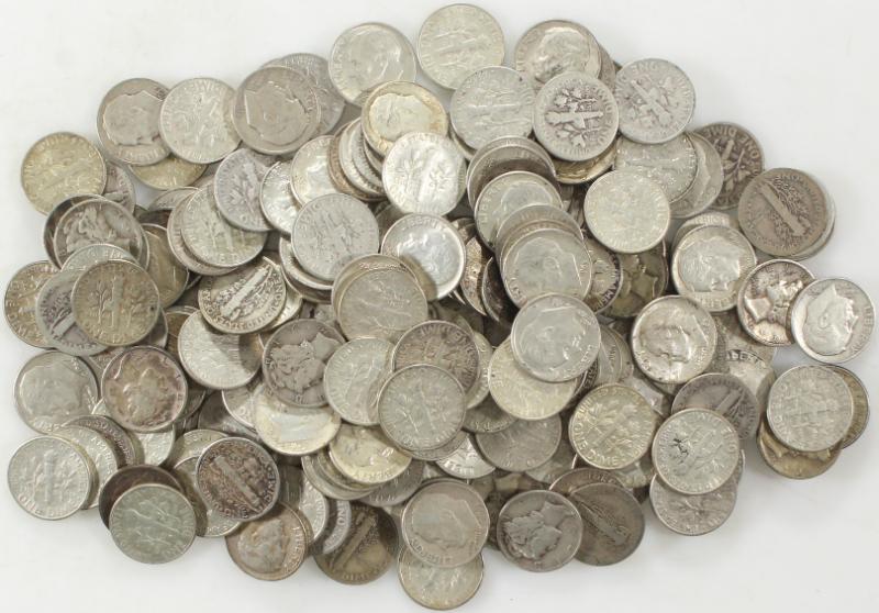 $15 face Dimes most Mercury w/ a few Roos avg circ. (Image)