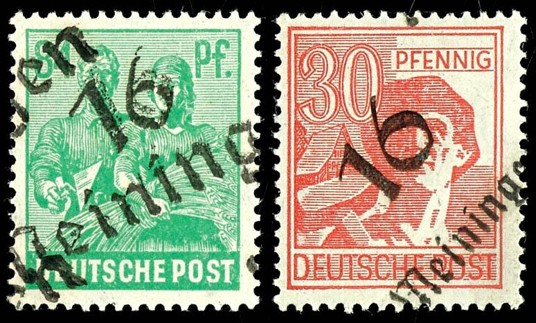 2 to 80 pfennigs, without 30 pfennigs, overprint 16 Meuselwitz b, type b, letter piece, used, perfect, all values BPP-expertized, Michel 225.- (166/80III)
