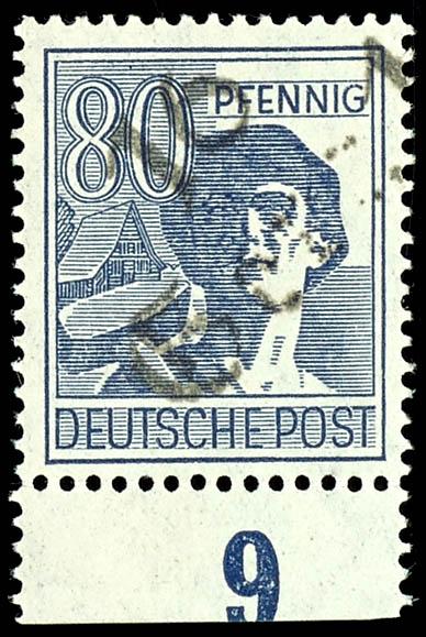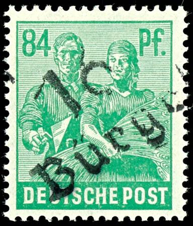 84 Pfennig "Marx-Allee" mit Abart "Druck auf der Gummiseite", tadellos gestempelt mit Bedarfsrundstempel "SEBNITZ", Fotobefund Jörg Schönherr VP (2024), Mi. 650.- (Image 1)(Image)
