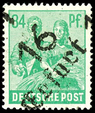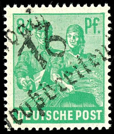 84 pfennigs "Marx avenue" with variety "printed on the gummed side", neat cancelled with need round postmark "SEBNITZ", photo expertize George Schoenherr VP (2024), Michel 650.- (353XIG) Certificate