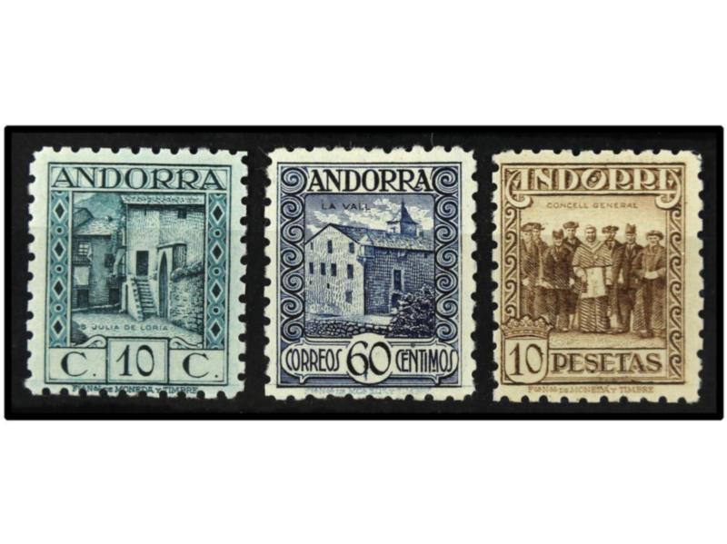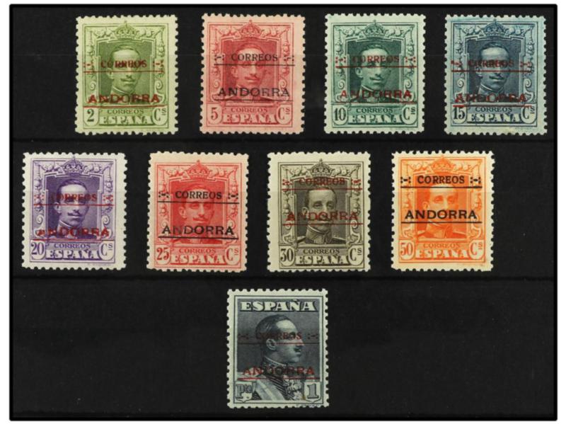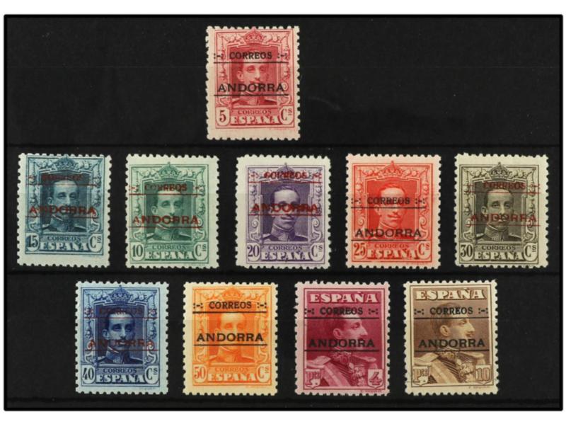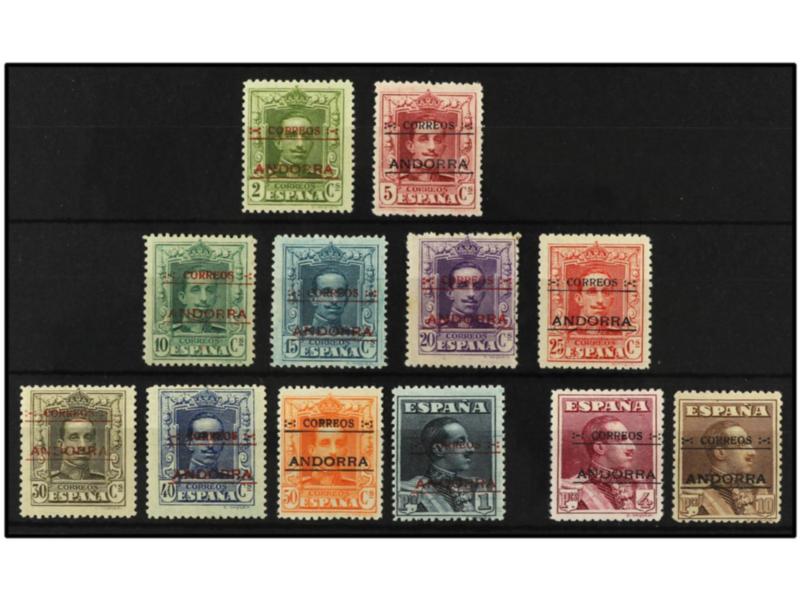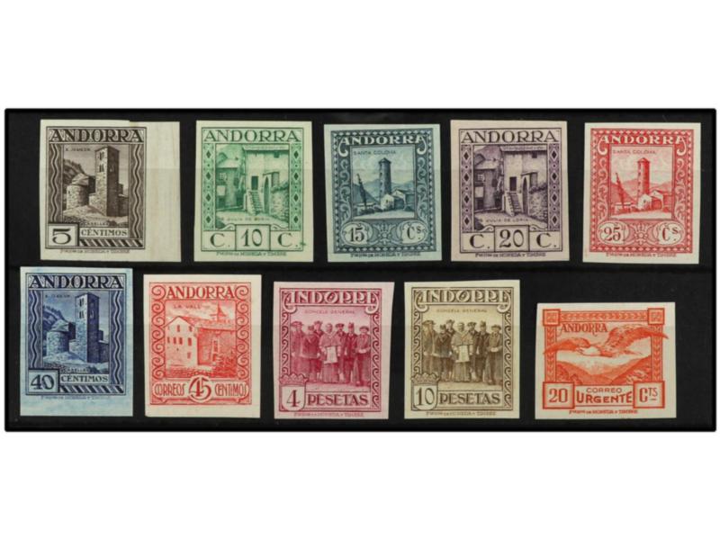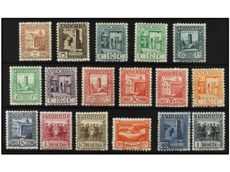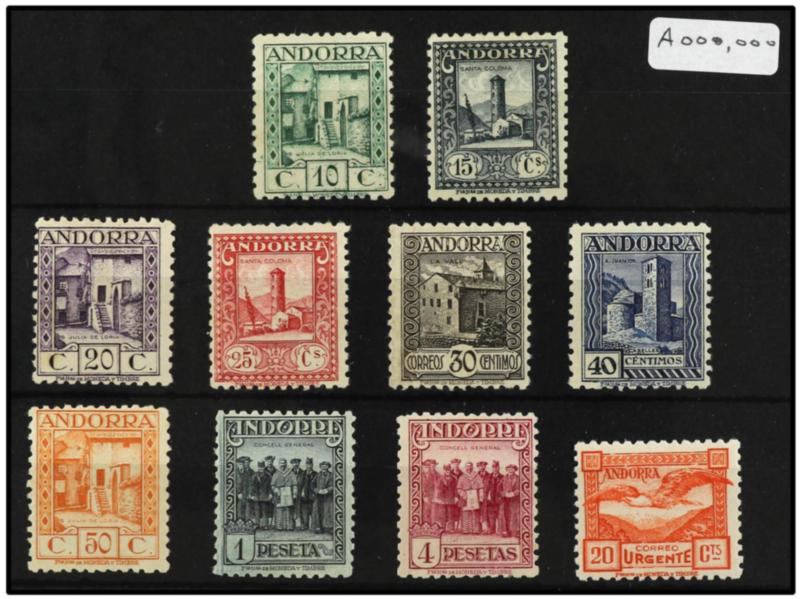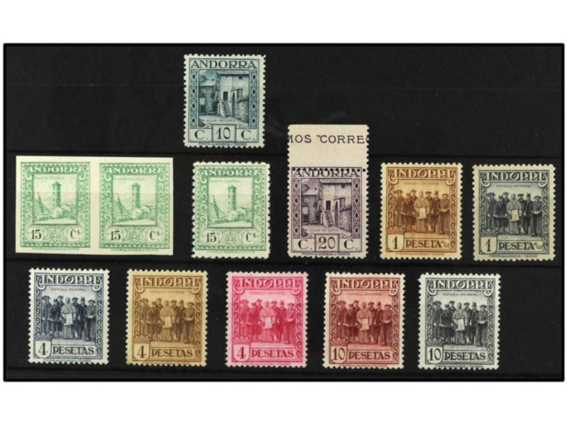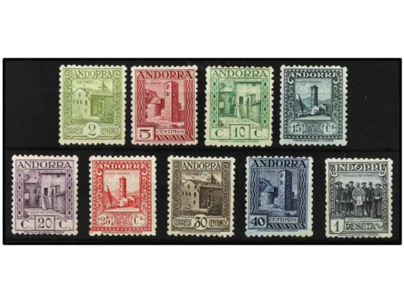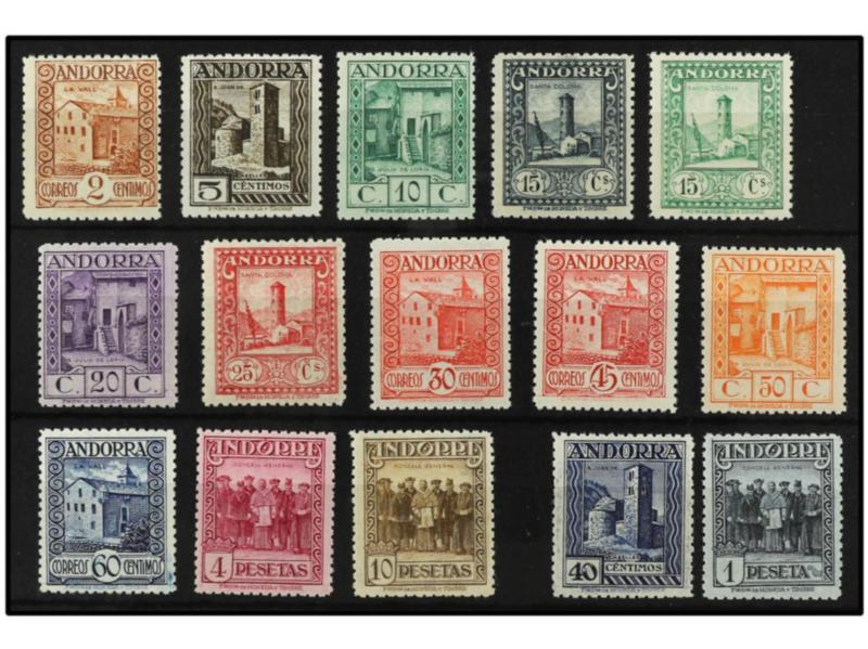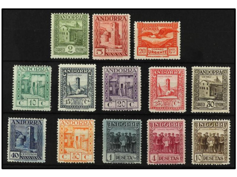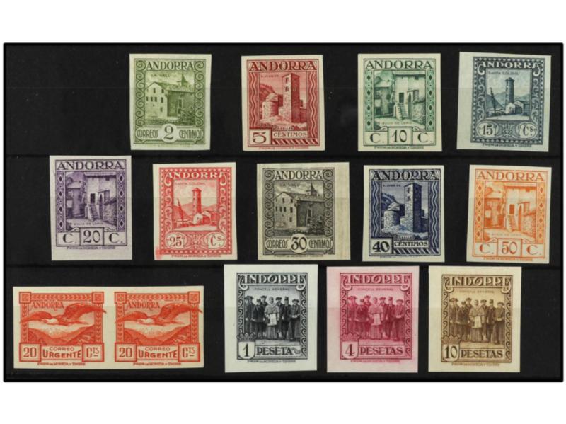 ANDORRA. JUEGO COMPLETO (sin las variedades de color), dentado 14. RAROS. Ed.1/12d. Cat. 1.640€. (Image1)