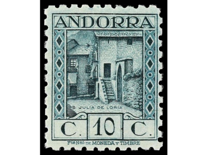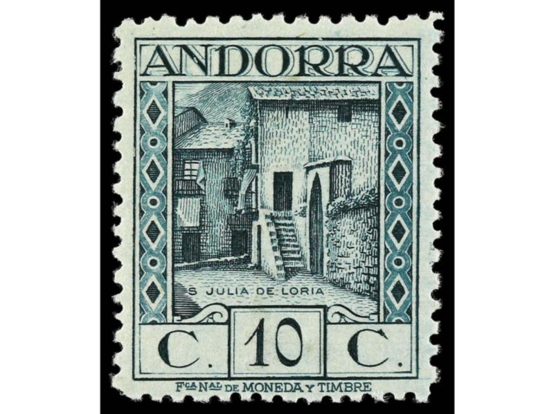 ANDORRA. 10 cts. verde oscuro CAMBIO DE COLOR. Muy bonito. Cert. GRAUS. Ed.17e. Cat. 970€. (Image1)