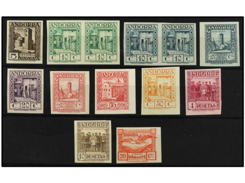 ANDORRA. Conjunto de 11 valores (dos en parejas) SIN DENTAR, la mayoría sin goma. Ed.29/32, 34, 35, 38, 39, 42/44. Cat. 2.335€. (Image1)