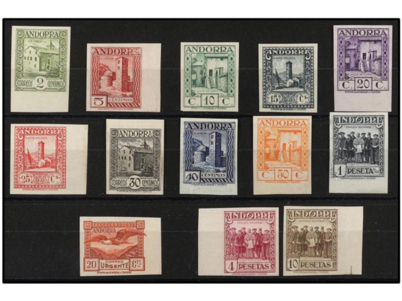 ANDORRA. SERIE COMPLETA. 13 valores SIN DENTAR. LUJO. RARA en esta calidad. Cert. CEM. Ed.15/27s. Cat. 1.585€. (Image1)