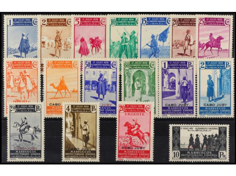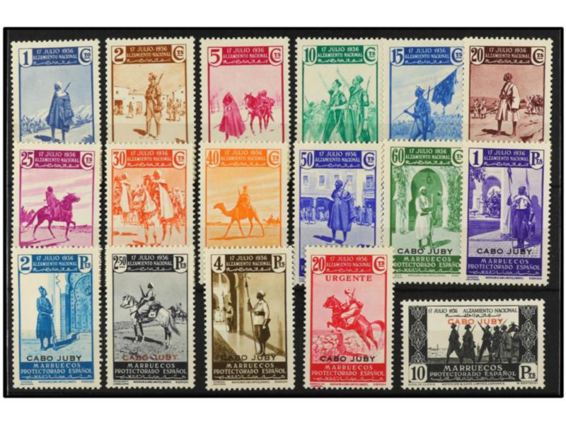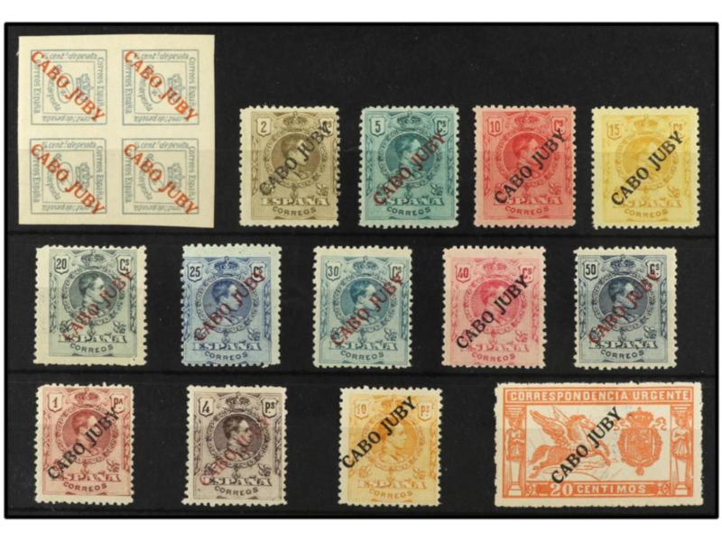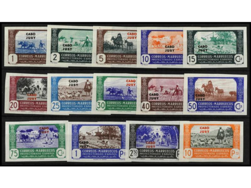 COLONIAS ESPAÑOLAS: CABO JUBY. SERIE COMPLETA, 14 valores. Numeración A.000.000. 10 pts. sin goma. Ed.5/18. Cat. +250€. (Image1)