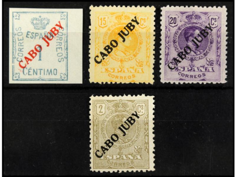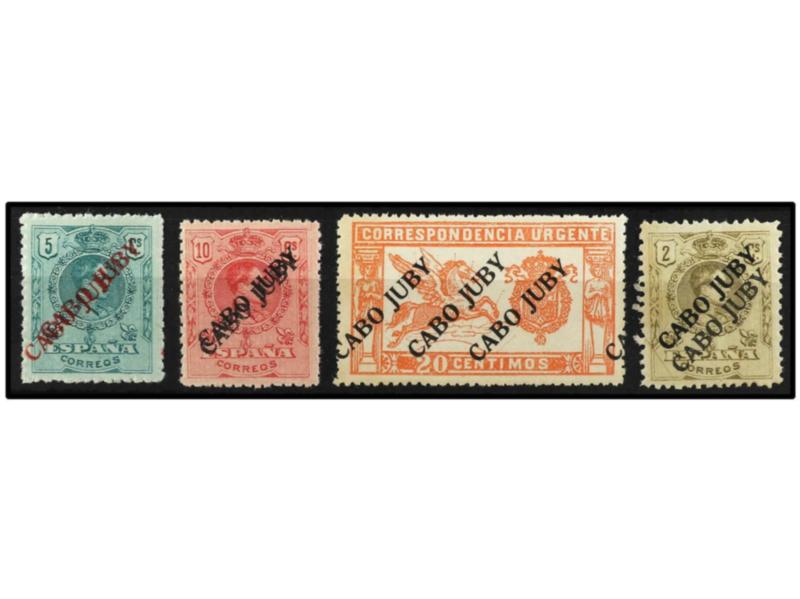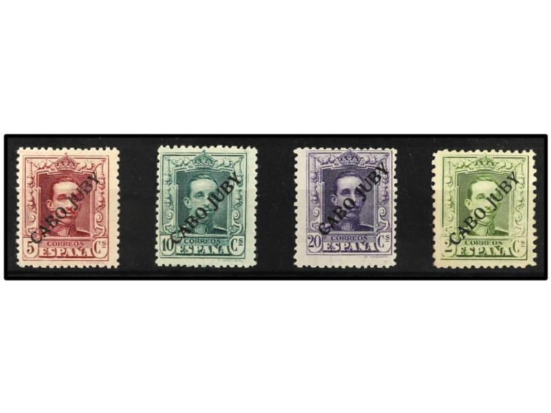 COLONIAS ESPAÑOLAS: CABO JUBY. SERIE COMPLETA, 4 valores. RARA. Valor clave cert. GRAUS. Ed.19/21. Cat. 670€. (Image1)