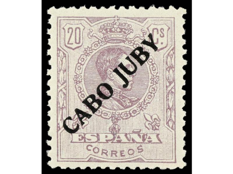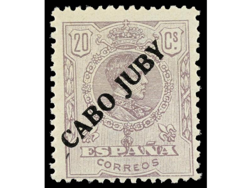 COLONIAS ESPAÑOLAS: CABO JUBY. 20 céntimos lila. PIEZA DE LUJO. Muy raro en esta excepcional calidad. Cert. COMEX. Ed.NE 1. Cat. 1.275€. (Image1)